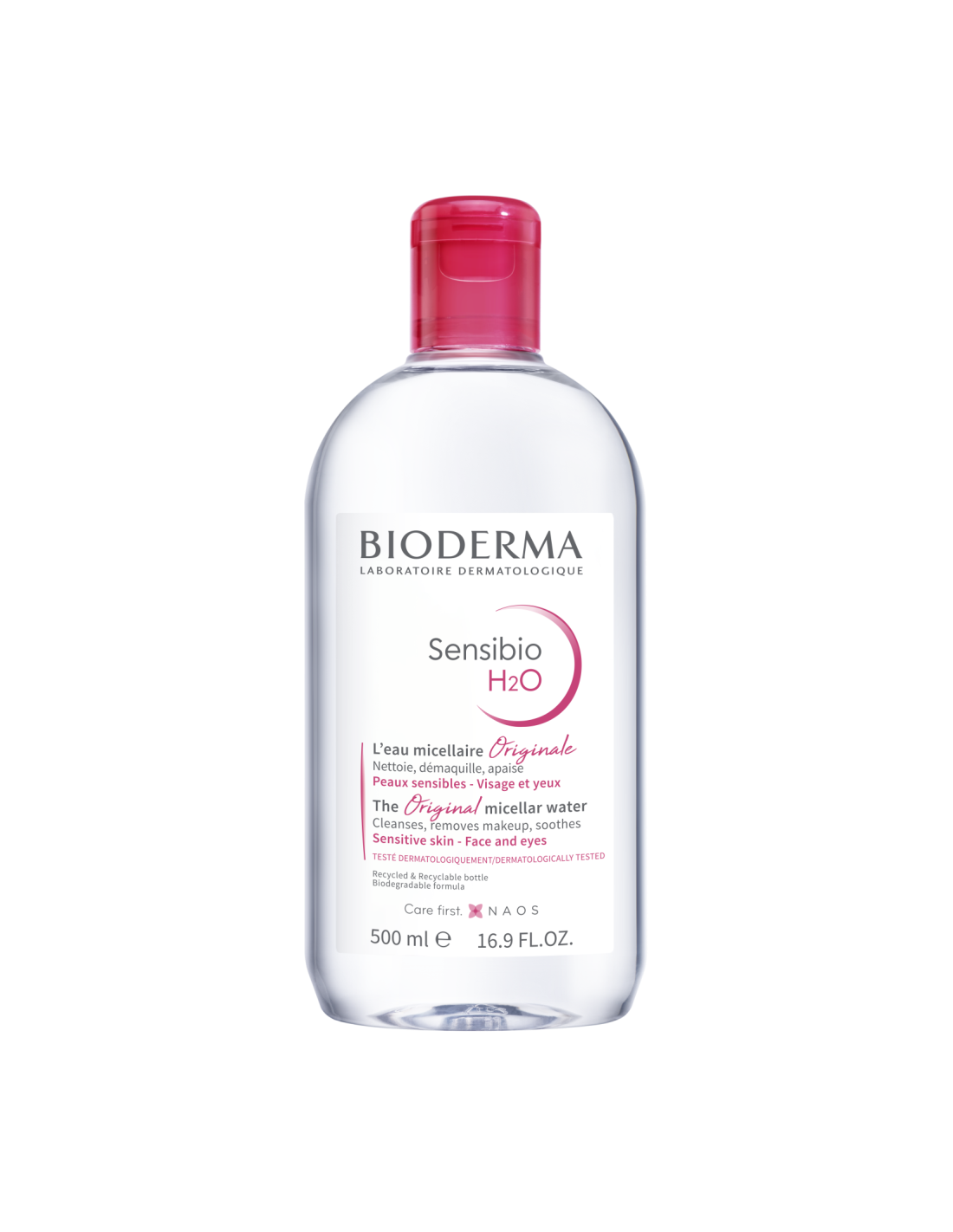 Para asegurar una excelente tolerancia, Sensibio Agua Micelar ha sido desarrollada con agua altamente purificada (libre de cualquier substancia o microorganismo dañinos para la piel) y con un pH fisiológico.