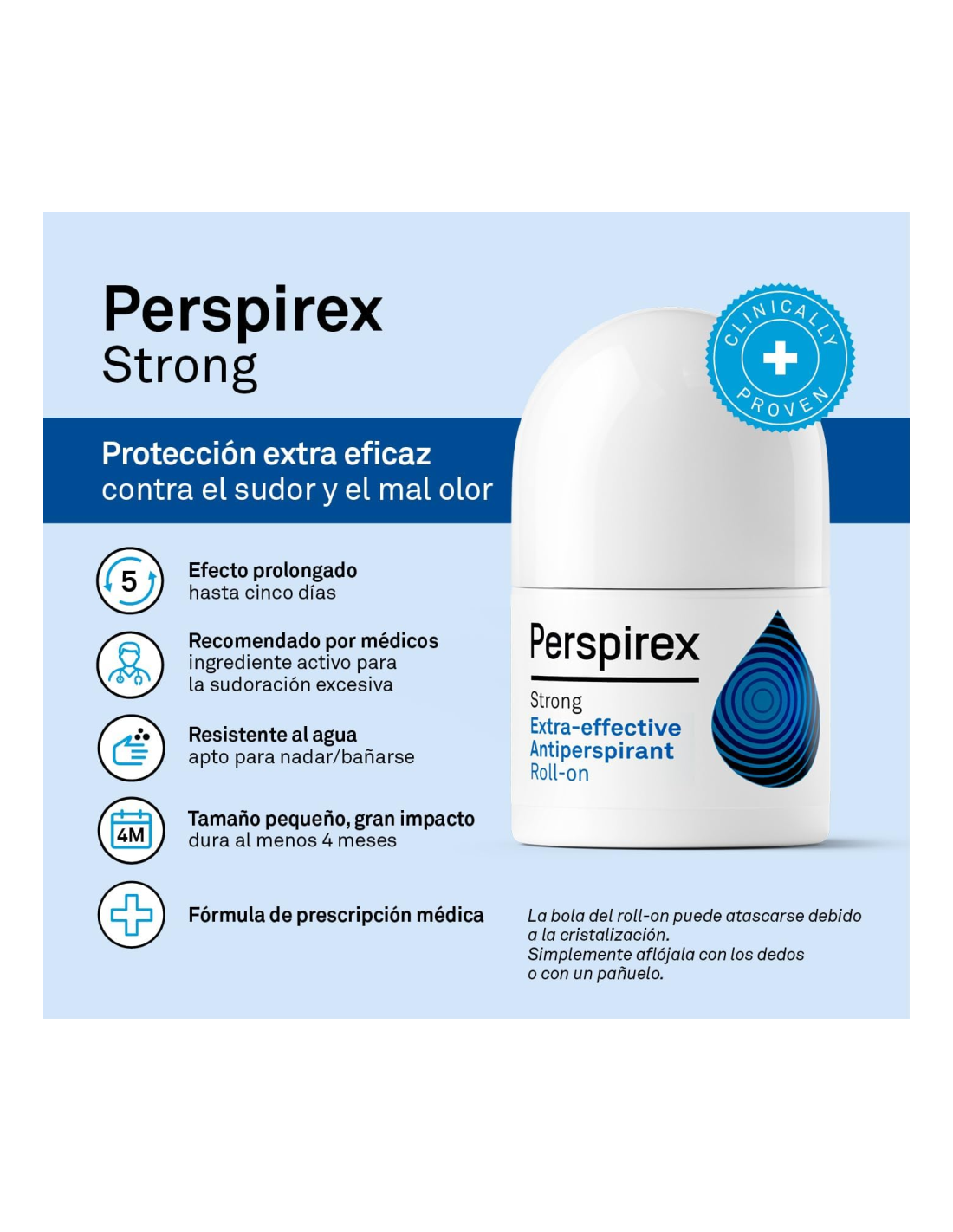 Perspirex Strong es la primera opción para personas con problemas graves de sudoración.