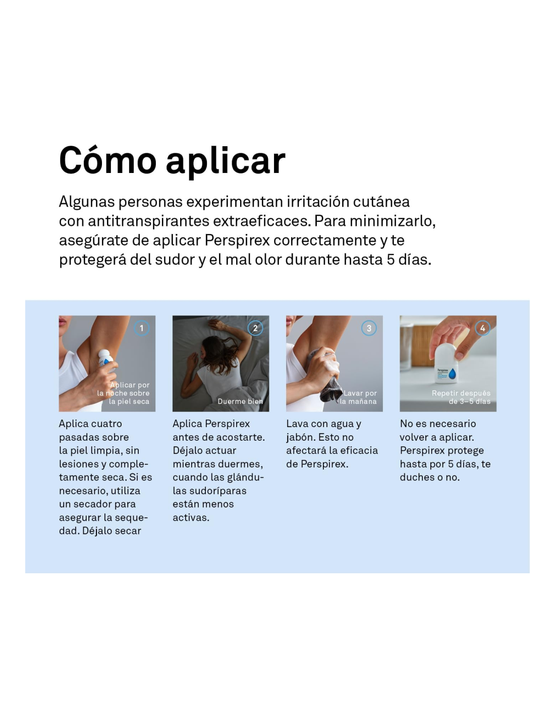 2. Aplique Perspirex por la noche antes de acostarse.